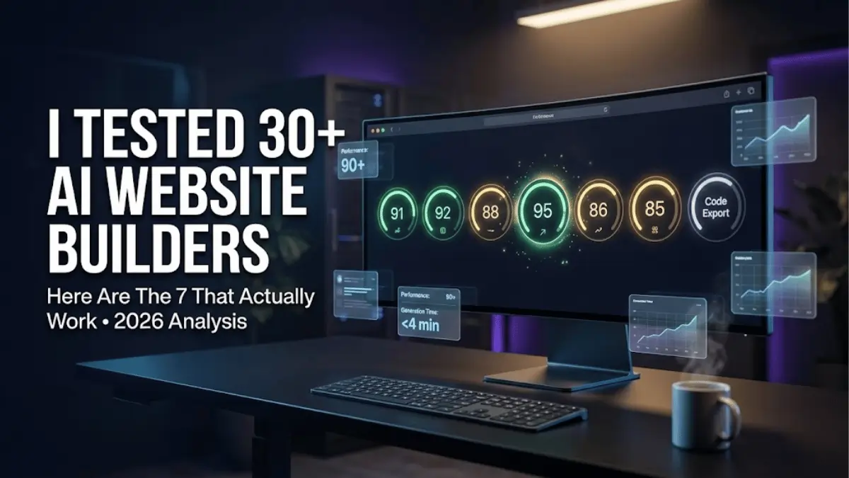 AI website builders are platforms that use machine learning to automatically generate responsive websites from minimal user input, typically within 30 seconds to 4 minutes. Leading 2026 platforms like Wix ADI, 10Web, and Framer achieve 90+ PageSpeed scores and reduce development time by 60% compared to traditional workflows.