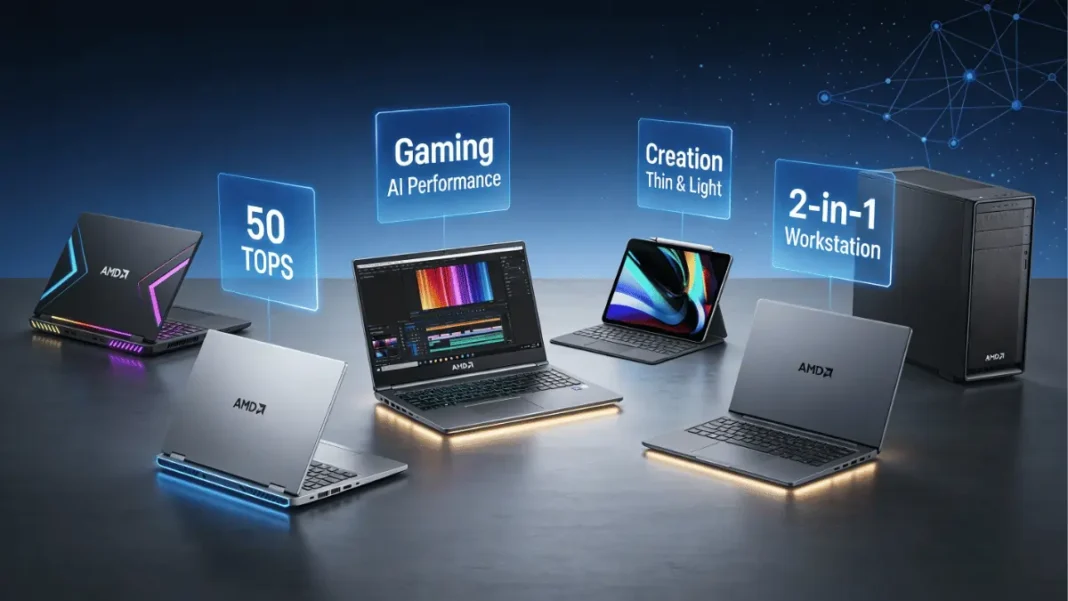 AMD categorizes its 150+ AI PC models into six use-case buckets, each optimized for different workflows. This isn’t arbitrary marketing; the categories reflect genuine hardware differences in cooling, GPU pairing, and form factor.