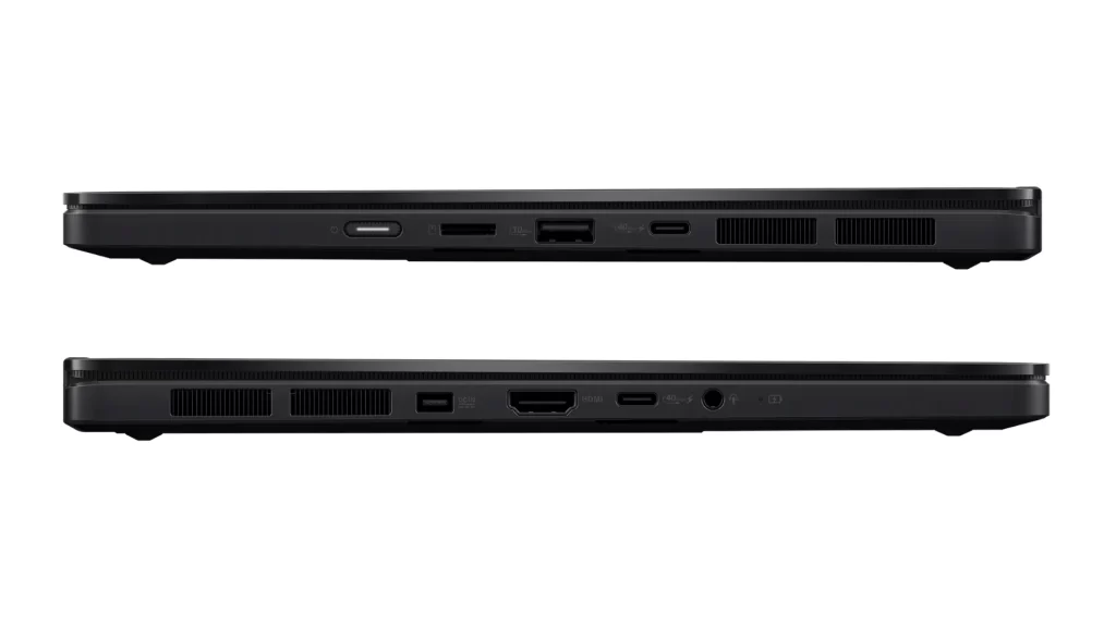 - Ports: 2× USB4 Type-C, 1× USB-A Gen2, HDMI 2.1 FRL, microSD, 3.5 mm.