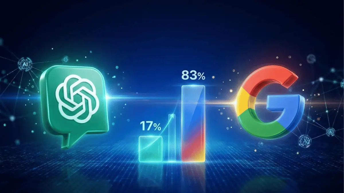 OpenAI’s ChatGPT has secured 17-18% of the global query market as of January 2, 2026, marking the first time in over two decades that a competitor has achieved double-digit share against Google’s search dominance. While Alphabet maintains 78-80% of searches, the shift signals a fundamental change in how users interact with information from clicking through links to receiving synthesized, cited answers directly.