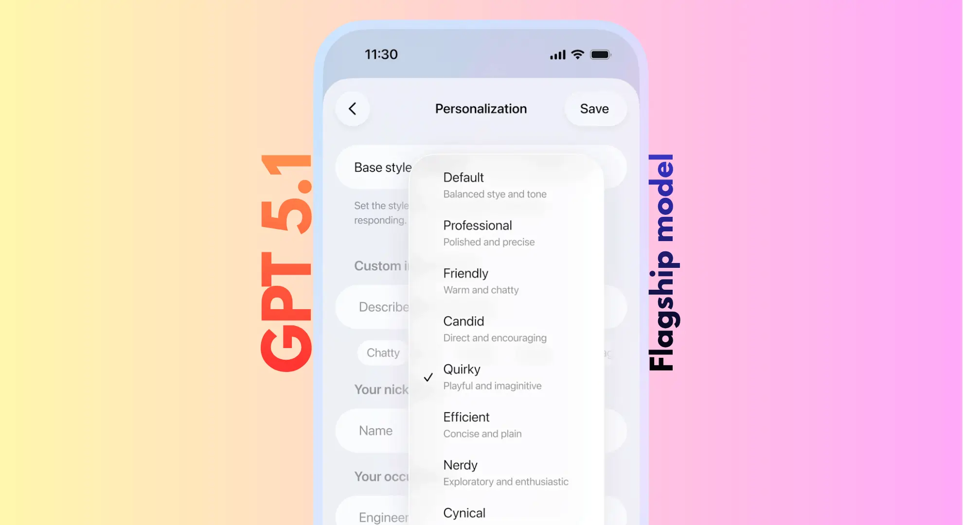 The original Cynical and Nerdy options introduced earlier in 2025 remain available under the same dropdown for users who prefer those personalities.