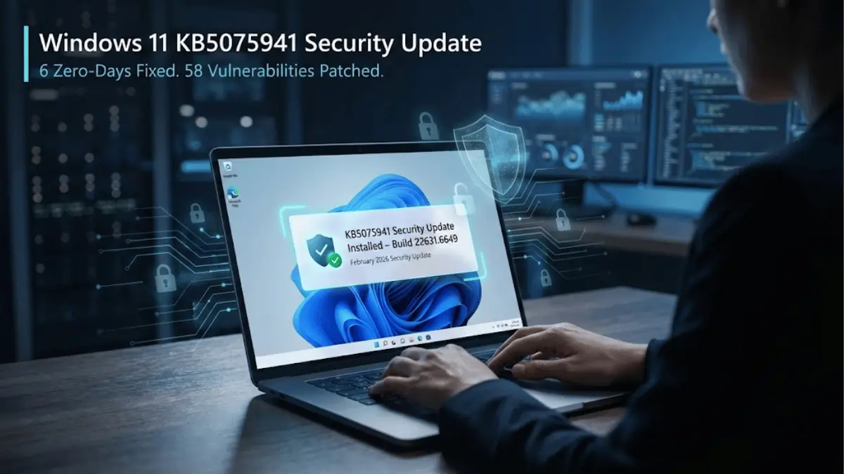 KB5075941 is a cumulative security update released February 10, 2026, exclusively for Windows 11 version 23H2. It updates systems to Build 22631.6649, addressing 58 security vulnerabilities including six actively exploited zero-days. The update is mandatory and contains February 2026 Patch Tuesday security fixes.