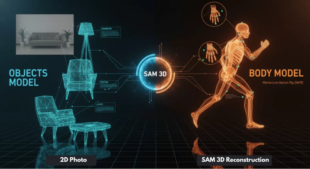 This AI just turned a single photograph into a fully textured 3D model you can drop into Blender or Unity. No multi-camera setup, no hours of manual modeling, just one click. On November 19, 2025, Meta dropped what might be the biggest computer vision release of the year: SAM 3D, a pair of models that reconstruct objects and human bodies from flat images with startling accuracy. Here’s everything you need to know, from technical architecture to hands-on implementation.