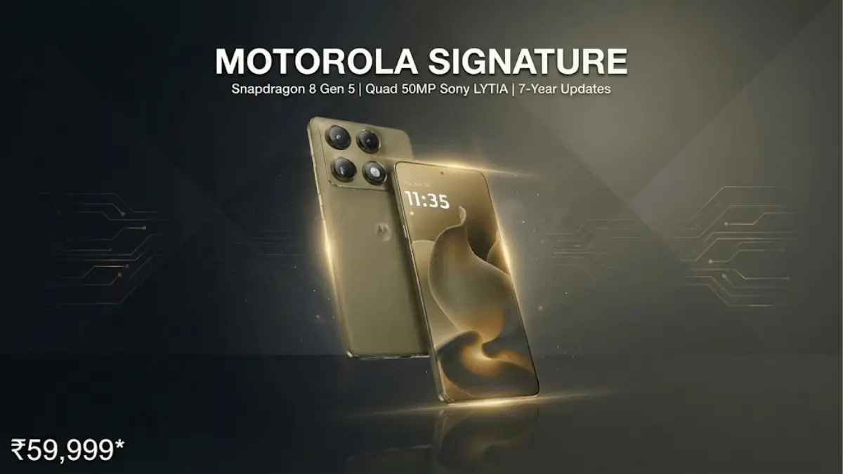 • The Launch: Motorola Signature debuts in India at ₹59,999 with Snapdragon 8 Gen 5 chipset, 50MP triple Sony LYTIA cameras, and 7-year Android update commitment announced January 23, 2026