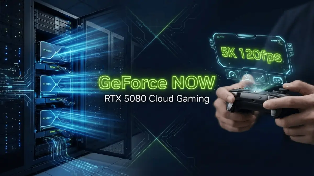 GeForce RTX 5080 servers with Blackwell architecture power Ultimate memberships, delivering 5K 120fps streaming and DLSS 4 technology.