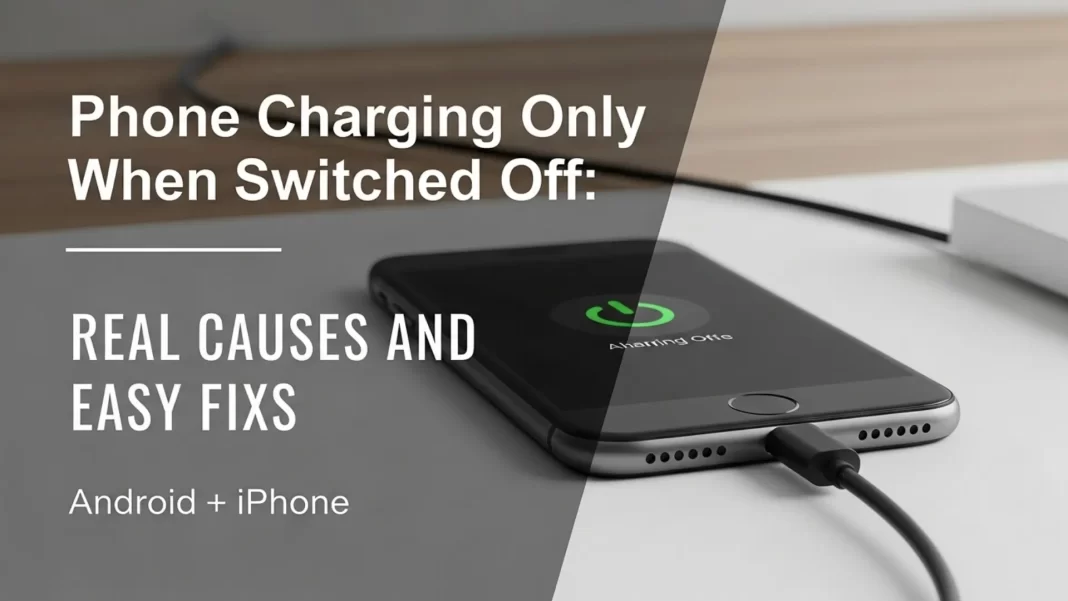 If your phone only charges when it’s switched off, you likely have low input power, a dirty or damaged port, moisture locking out charging, or heavy background drain that exceeds what the charger supplies. Start with a known-good 15 – 30 W charger and cable, clean the port, then test software and battery health.