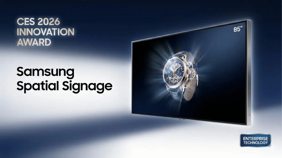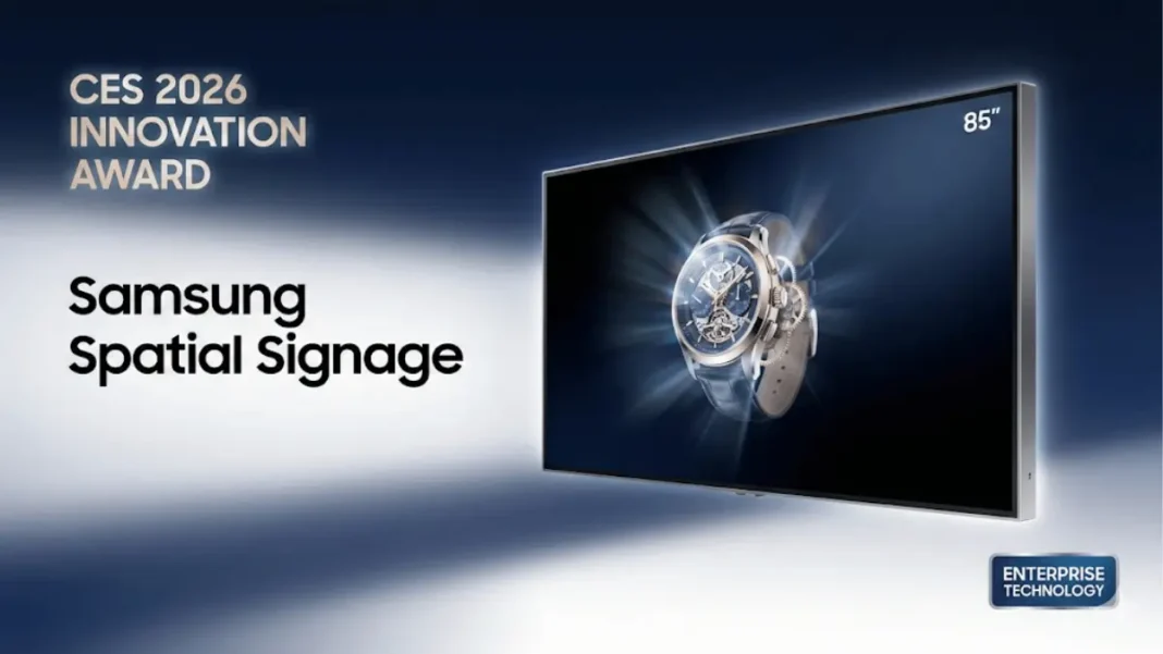 Samsung Electronics announced that its Spatial Signage display has won a CES Innovation Award 2026, marking the company’s first-ever recognition in the Enterprise Technology category. The 85-inch glasses-free 3D display, first unveiled at IFA 2025, is now making its commercial display debut at CES 2026 in Las Vegas from January 5-7.