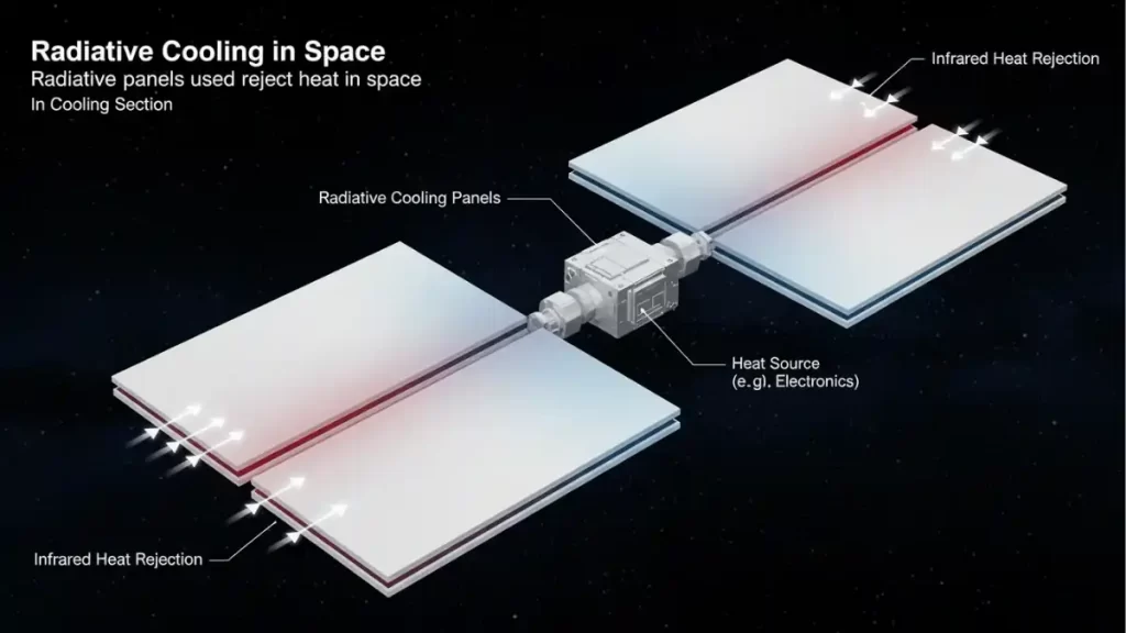 Cooling in a vacuum. Space is “cold,” but that doesn’t cool your chips. There’s no air to blow heat into. You must radiate heat away, which means big, lightweight radiators and careful thermal design. This is solvable, just not trivial, and it adds mass and complexity.