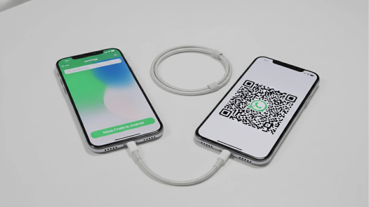 WhatsApp has a free, built-in transfer tool that moves chats from iPhone to Android with a Lightning to USB-C cable. You need Android 12+ (or a Samsung with Smart Switch), a factory-reset Android phone, and the same phone number on both devices. Transfer usually takes 10–45 minutes and brings over chats, media, and groups.